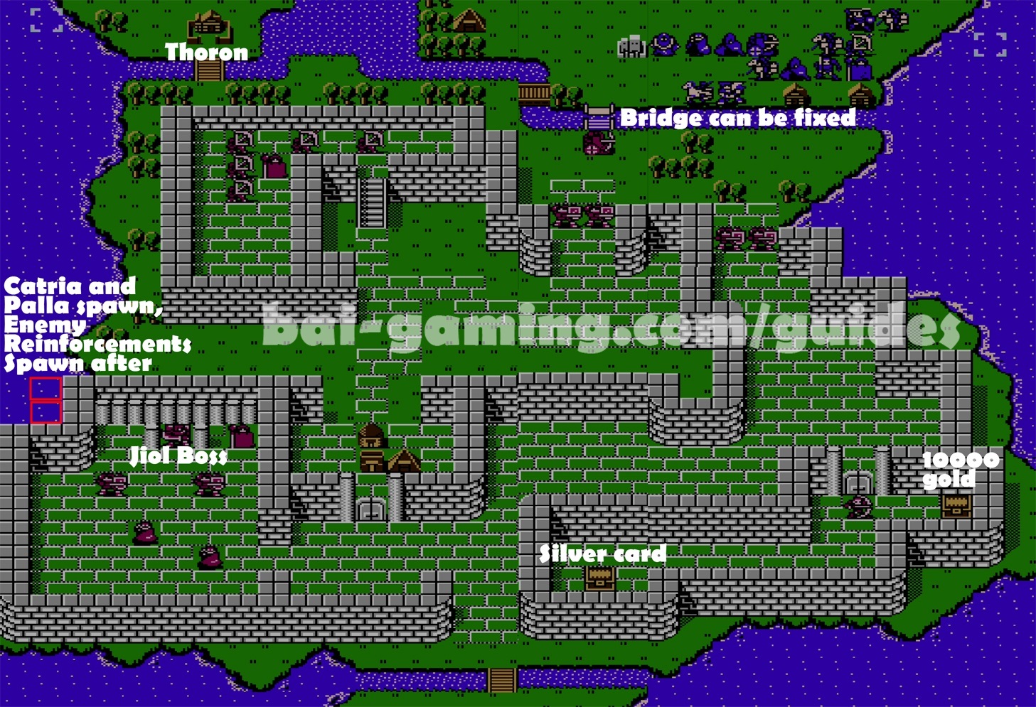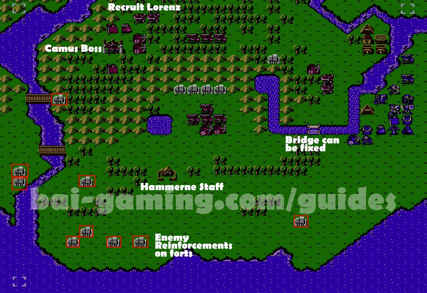 - When the southern reinforcements stop, use the bridge key and defeat the enemies, making your way to the northwest, remember to talk to Lorenz with Caeda when possible