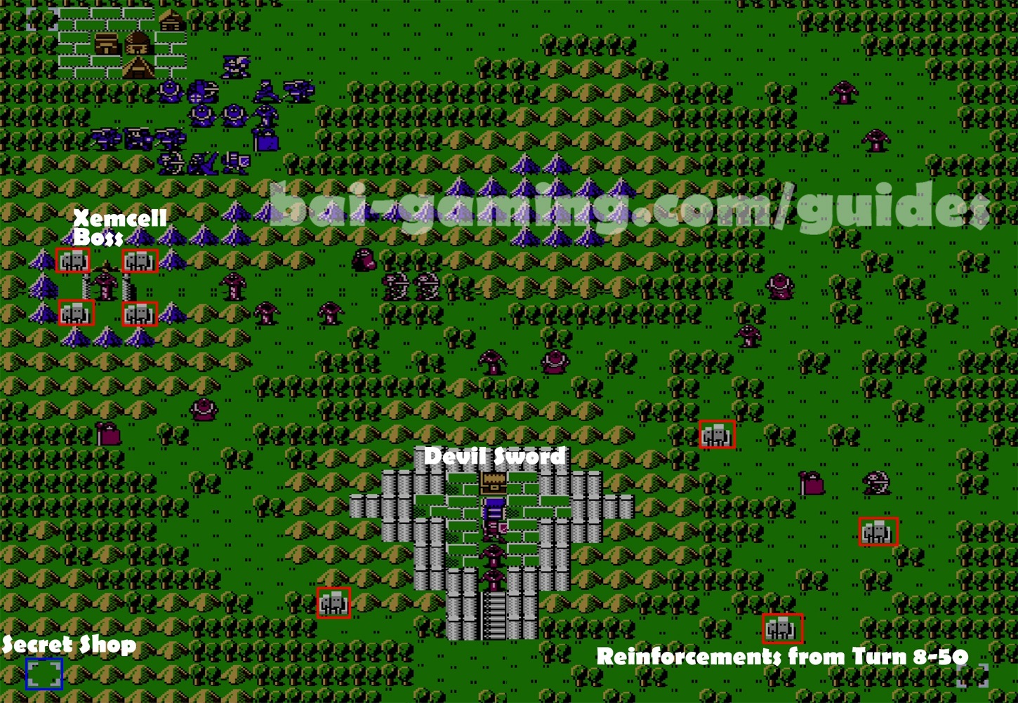 - The Secret Shop is to the southwest, in the tile that is a plains in the middle of all the mountains, you can buy amazing stat boosters including boots, you can break the game doing this, but I recommend just picking up some of them for Marth, only Marth with the Falchion fights the final boss so pump him full of stat boosters