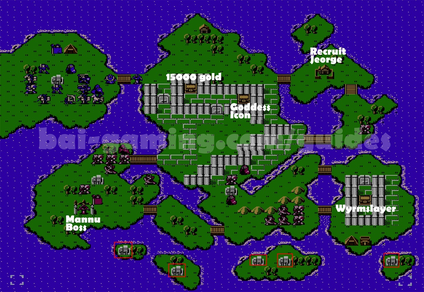 - Block the bridge in the north and the 2 western bridges with characters, the pirates can walk over water, but this will hold them off for a little bit