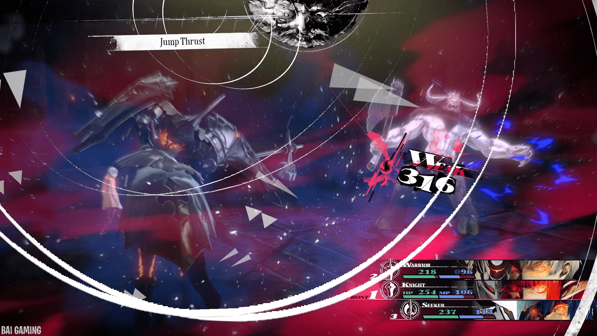 Instead, by having both a Warrior and Knight in your party you can use the Jump Thrust synthesis skill (press A or cross to use synthesis skills in battle on the Knight’s turn), it uses 2 press turns but you also gain 2 press turns by hitting the Minotaur’s weakness.