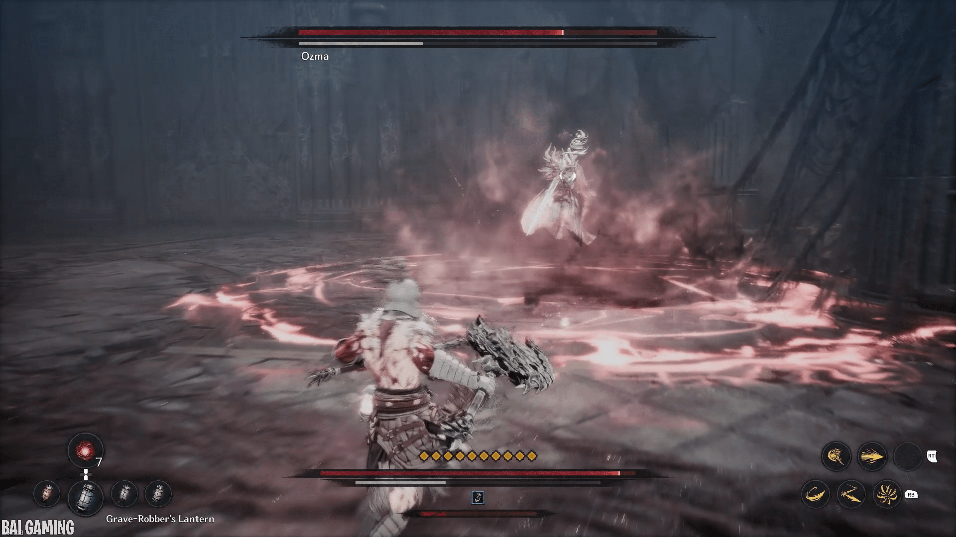 We’ll explain how to beat Ozma. You’ll learn how to dodge or parry all of his attack patterns throughout all of his phases. We won’t recommend a specific build — this guide will work for any kind of build and weapon type (just try to be light to dodge faster). We’ll have pictures to illustrate all of his possible attacks.