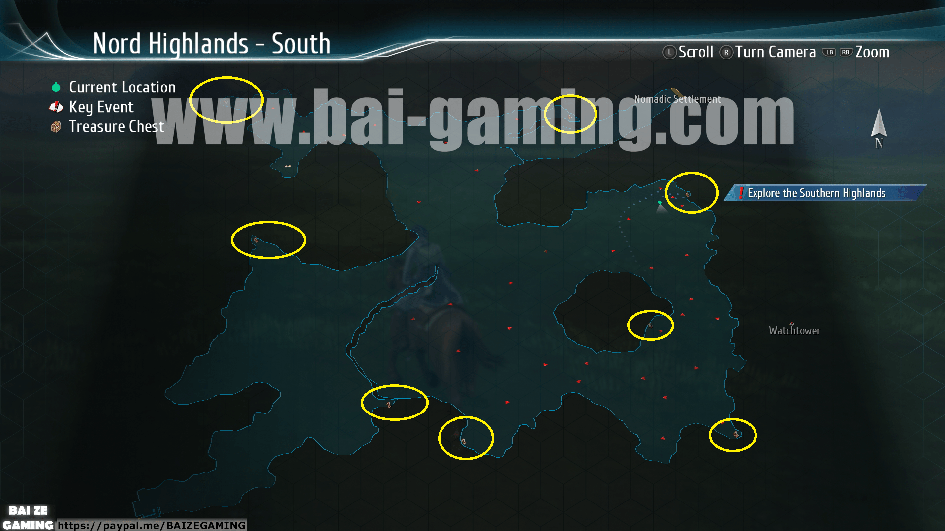 - 3 Treasure Chests (Treasures 3/203) (I’m very sorry, the top-left corner yellow bubble has a treasure chest, sorry that the legend blocks it, future maps are positioned better, this one is bad because I had to fix the map controls after a fresh new game playthrough.)